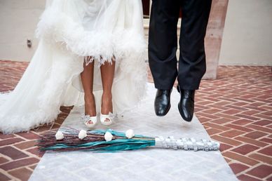 The Jumping the Broom ritual originated in the early 19th century, when enslaved African Americans weren't allowed to formally marry. Instead, to unite, the tradition was to lay a broom on the ground and jump over it together. For couples today, the act represents a brushing away the past or a fresh start.